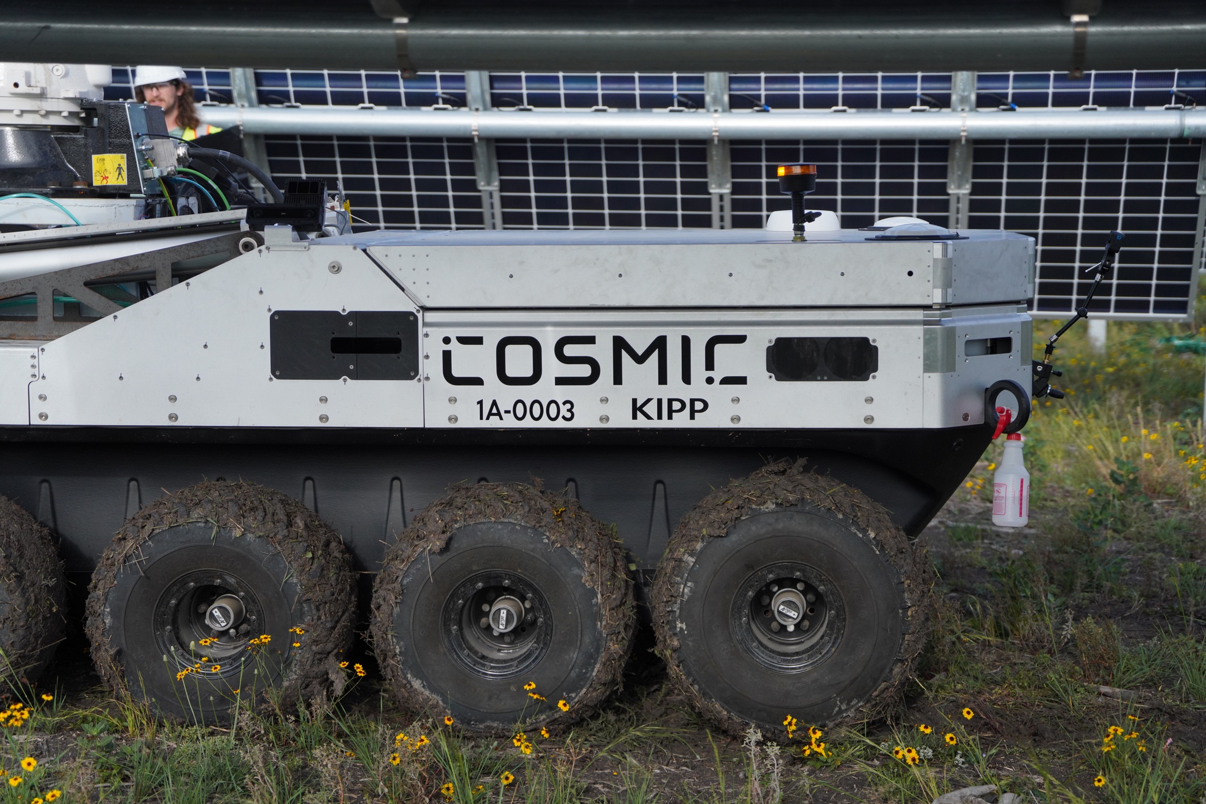 On-location photography documenting Cosmic Robotics Southern Texas solar robotics deployment, focused on autonomous installation equipment, field conditions, and brand-ready infrastructure imagery.